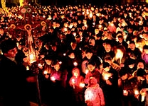 La nuit des Paques tout le monde va à la Messe ou ils font 3 fois le tour le l’église, des cierges allumés à la main, puis ils entrent 3 fois dans l’église en chantant le Canon de la Résurrection, avant de rentrer chez eux avec la lumiere sainte. C'est un moment magique quand toute la ville ou le village s'illumine quand les gens rentrent à la maison, des cierges allumés à la main.
