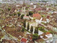 Sibiu, ville moderne et occidentale, conserve son ancienne bourgade médiévale florissante, avec des nombreux édifices baroques érigés sous la domination des Habsbourg, a partir de 1699. Fondée par des colons allemands au XIIe siècle, elle fut le centre culturel traditionnel des Saxons (ainsi qu’il est d’usage d’appeler les Allemands de Transylvanie) et demeura même exclusivement allemande jusqu’au milieu du XIXe siècle; ensuite, elle se roumanisa peu à peu, jusqu’à devenir à majorité roumaine dans les années 1930; aujourd'hui, en particulier après l’exode massif des Saxons vers l’Allemagne, pour motifs économiques, la ville est roumaine en très grande majorité (plus de 95 %). Sibiu (Cibinum), ultérieurement appelée Hermannstadt, a été fortifiée au Moyen Age par des murailles en brique rouge, d'ou sa dénomination de "citadelle rouge".