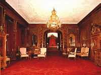 Le Château de Peles abrite l'une des plus importantes collections de peintures en Europe regroupant près de 2000 tableaux. Parmi les 160 pièces que le château possède, les plus importantes sont les suivantes :Le hall d'honneur, dont le plafond est orné de vitraux aux motifs allégoriques ou héraldiques, La salle des glaces , Les salles d'armes, abritant une riche collection d'armes et armures dont une épée de bourreau du XVIe siècle utilisée pour décapiter les nobles et une épée orientale utilisée par les samouraïs pour se faire sekkupu, Le salon florentin, abritant des candélabres de Murano, Le salon de musique, au mobilier en bois de teck et dont les sujets des vitraux sont inspirés des contes roumains, Le salon mauresque possédant une fontaine de marbre, Le salon français , Le salon turc, La salle du théâtre, La suite impériale.